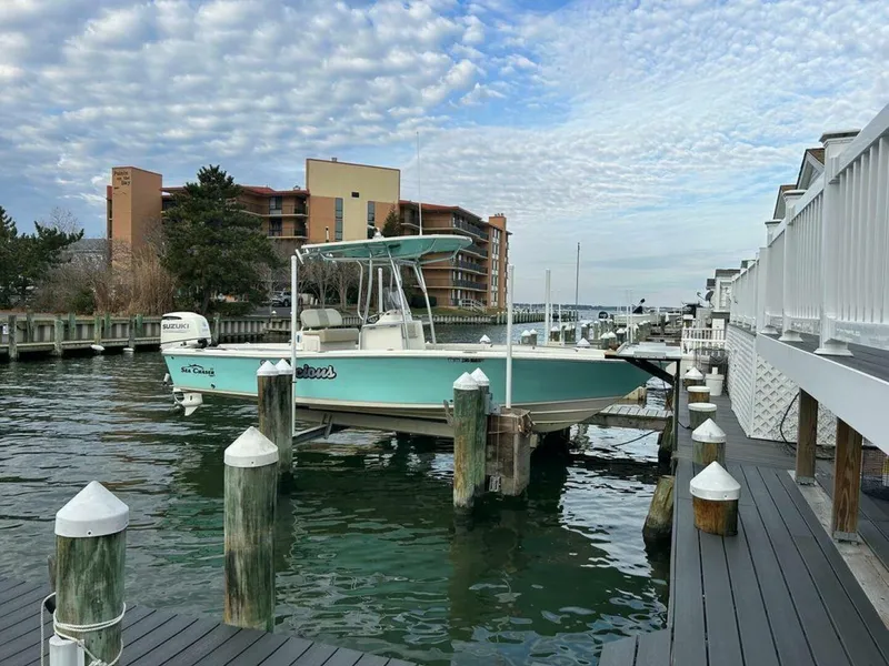 Lift kept, no bottom paint this Sea-Chaser is ready for back bay and near-shore adventures. 1500 hours on a Suzuki 250 with a new lower unit. Tandem axel trailer included with sale.