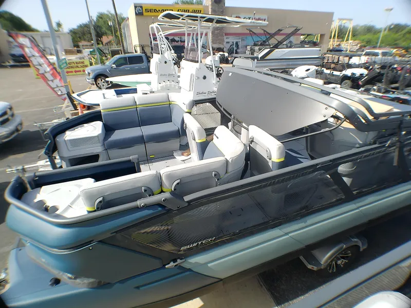 Introducing the stunning 2025 Sea-Doo 55SL, a remarkable pontoon boat that combines modern design with exceptional performance. With an overall length of 20.33 feet, this new vessel is perfect for leisurely outings on the water. Crafted from high-quality materials, it promises durability and style. Powered by a robust 230 hp engine, the Sea-Doo 55SL delivers an exhilarating experience, making it ideal for both relaxation and adventure. The thoughtful design ensures a smooth ride, allowing you to enjoy the beauty of your surroundings. This boat features advanced equipment, enhancing your experience on the water. Whether you're cruising with friends or enjoying a peaceful day on the lake, the Sea-Doo 55SL is designed to accommodate your needs. Embrace the joy of boating with this exceptional pontoon, where every journey becomes a memorable adventure. The 2025 Sea-Doo Switch 21 is a 21-foot-class jet-powered pontoon that combines modular deck design with sporty performance. Powered by a 230 HP Rotax 1630 ACE engine, it delivers smooth handling, quick acceleration, and shallow-water versatility thanks to its jet propulsion system. With seating for up to 10 and a customizable layout, it's built for cruising, watersports, and all-day fun on lakes or rivers.