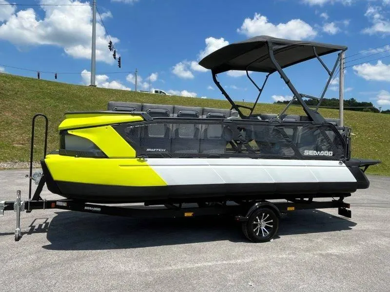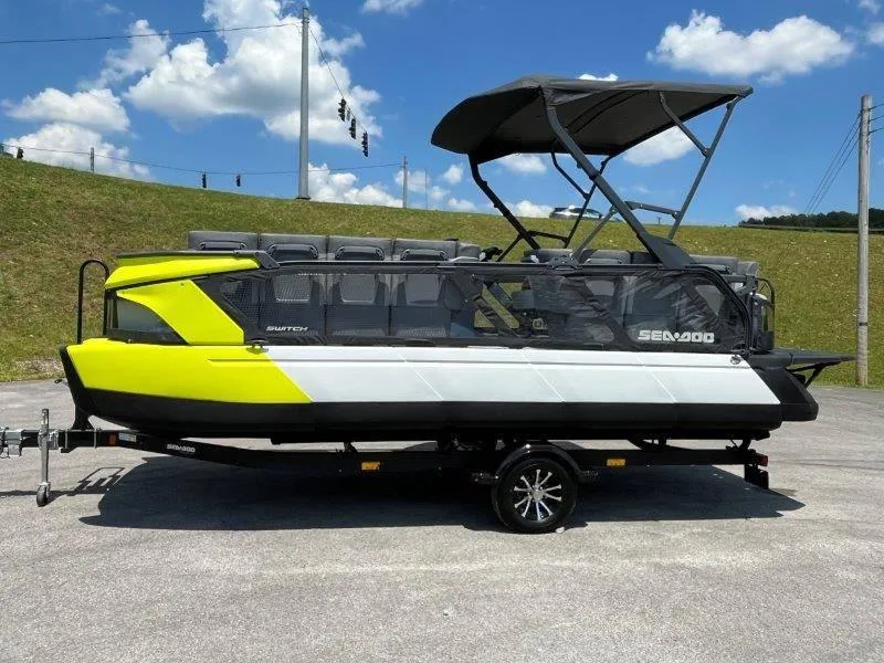 2024 Sea-Doo Switch Cruise 21' 230HP, All-Out Comfort Lounge, relax, soak - however you take in the Sea-Doo Life, the Switch Cruise is outfitted to help your family do it with unmatched comfort, convenience and style on the water. When the need for adrenaline kicks in, the Switch Cruise 21 with 230 HP delivers the goods. With enough power for spirited adventures and watersports, it adds the next level of excitement to awesome comfort and convenience of the Cruise model. Features may include: Trailer Included Ready to go Switch Cruise models come complete with high-quality, powder coated trailer included straight from the dealership. Galvanized trailer finish is also optional. Nothing Quite Like It Unmatched fun and maneuverability The perfect platform for adventures with family and friends, there's nothing on the water quite like the Switch Cruise. Intuitive handlebar steering with Intelligent Brake and Reverse (iBR) stops the boat sooner and simplifies docking and handling. Fully Customized Fit Personalized family fun Switch modular deck is designed to be redesigned. As your adventures and needs change, the innovative tile system lets you transform the onboard layout in seconds without tools for unparalleled adaptability. Feel the ride Full of excitement and confidence The Switch Cruise Tri-hull design creates a whole new feeling on a pontoon. The outer pontoons are set slightly higher in the water, adding confident stability and nimble performance. Rotax 1630 ACE™ Engine Proven power of fun Every Switch Cruise comes with proven, reliable power thanks to a Rotax 1630 ACE engine. The jet propulsion system offers an outsized fun factor with a level of maneuverability never seen on a pontoon boat. Stay Cool Shade when you need it When the ride calls for a cool down this sturdy Bimini top deploys in seconds. The aluminum frame and high-grade marine canvas offer essential protection from sun and the elements. Bonus Room Full Swim Platform with LinQ Attachment Points A full swim platform and retractable boarding ladder make a functional area for swimming and watersports. LinQ attachment points make accessorization secure, stylish and simple. Make Sound Waves Waterproof Bluetooth® Audio No day is complete without tunes. Get in the groove on the water with a factory-installed 100-watt, fully waterproof Bluetooth audio system and ride to your own beat. Garmin ECHOMAP™ GPS Navigation Never lose your way Wander new waters with confidence. Top-of-the-line Garmin navigation system and chartplotter with optional fish-finder capability keep you on top of everything under the surface.