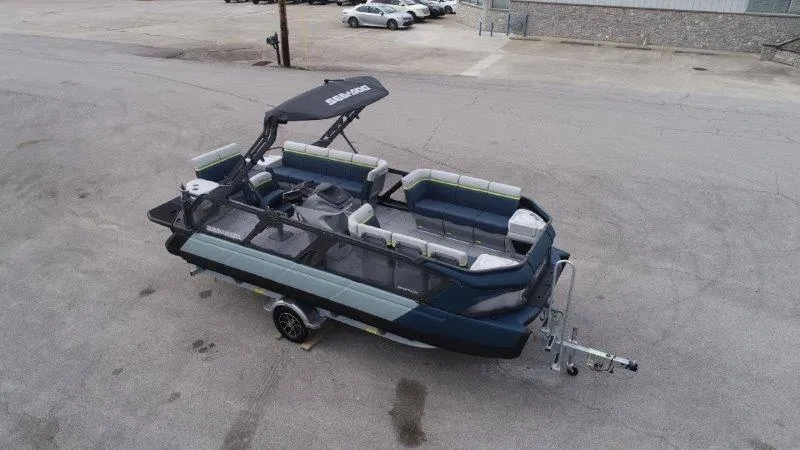 2025 Sea-Doo Switch Cruise Limited 21' 230HP, 2025 Sea-Doo Switch Cruise Limited 21' 230HP Status Symbol Unique Design, Colors and Lighting No detail overlooked. The Switch Cruise Limited includes high-end finishes from bow to stern and its unique graphics and coloration conveys A-List exclusivity on the water. Unique LED accent lighting sets the stage with just the right amount of elegance. Never Lose Your Way 10.25-Inch Touchscreen + Garmin GPS Navigation 10.25-inch touchscreen display pairs seamlessly with BRP GO! app to track your ride, waypoints and friends on the water. Additional 7-inch Garmin display offers pinpoint navigation with marine maps. Surrounded by Sound Best-in-Class Onboard Audio 6-speaker JL Audio system transforms the ride into a floating music festival. Includes 3 corner tables with 2 speakers each as well as two amplifiers and one subwoofer for an immersive 360-degree experience. ROTAX 1630 ACE™ Engine 230 HP of Excitement Every Switch Cruise Limited comes with proven, reliable power thanks to a Rotax 1630 ACE engine. The Switch Cruise Limited maximizes the fun factor with 230 horsepower and a level of maneuverability no other pontoon boat can offer. Fully Customizable Deck Space Toolless adaptability Rearrange seats, tables and accessories in seconds. The Cruise Limited adds a boatload of convenience with additional seating, speed ties for fast, easy docking and full swim platform. Nothing Quite Like It Unmatched fun and maneuverability Premium comfort captain's chair with a tilting handlebar allows each captain to find their favorite riding posture and adjust on the fly, making an already agile pontoon even more comfortable for drivers while maneuvering tight spaces and docking. Galvanized Trailer Included Ready to launch Every Sea-Doo Switch pontoon includes high-quality, powder coated trailer included straight from the dealership, so you're readily equipped for adventure. Galvanized trailer finish is also optional. Softer Landing Comfort in, comfort out More comfort, everywhere. The new Swim Platform Carpet provides a cushier landing for climbing back in and a softer seat for lounging with your feet in the water.