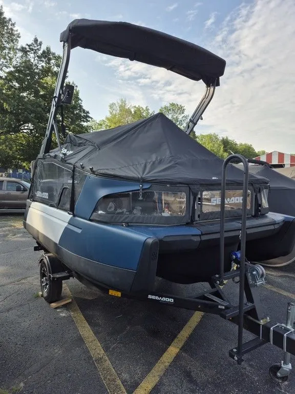 - Features: iBR® - Intelligent Brake & Reverse, iDF™- Intelligent Debris-Free Pump System, RF D.E.S.S.™ key | Audio System: BRP Audio System (Accessory), 100-watt speakers | Furnitures: Switch bimini top, Clear-view side panels, Stern lounge, Sun pads & Sport lounge, Sun pad backrest, 2x corner table, Driver seat with bolster, Rearview mirror, Glove box with dual USB port, 12V outlet, Retractable boarding ladder, Quick-attach inflatable holder, Ski tow eye, LinQ™ attachment points, Under-deck storage compartment, Console storage net, Integrated anchor storage, LED Navigation lights, LED Courtesy light, Integrated cleats (4), 420W battery generator