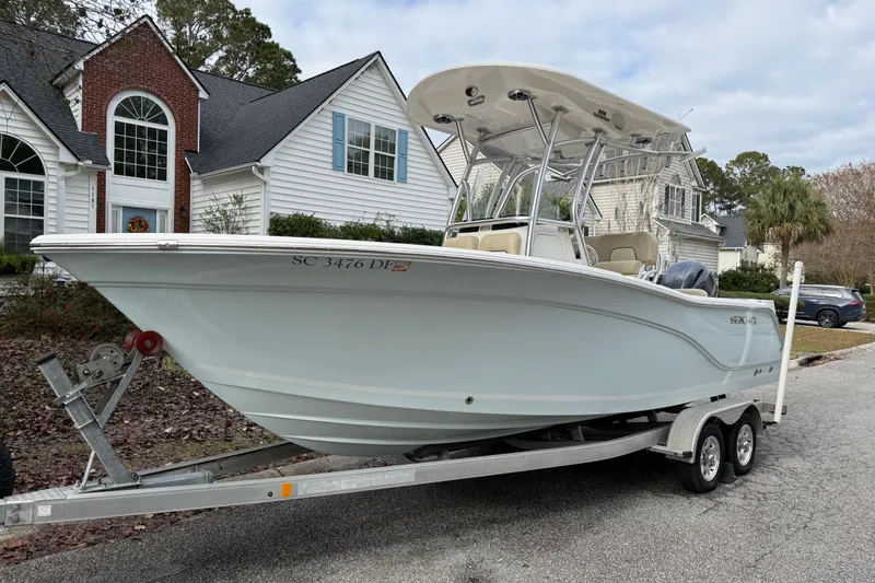 2017 Sea Fox 226 Commander powered by a Yamaha F150XB and includes a Magic Tilt Custom Welded Tandem Axle Aluminum Trailer.