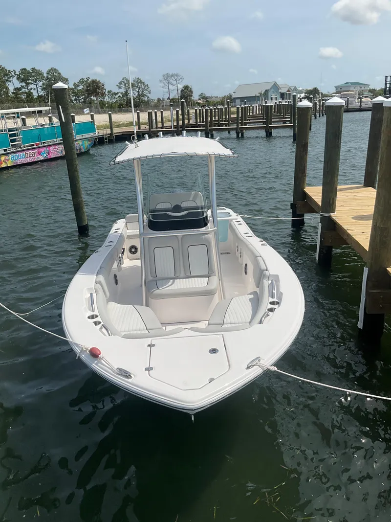 Fresh out of our fleet. 2023 Sea Fox 228 Commander powered by a Yamaha F200XB with 1073hrs(full breakdown below). Owned and serviced by us since new. Loaded with T-Top, 9" Garmin, Fusion BT stereo, VHF, trim tabs, live well, compass, live well net storage, head area for a potty or storage, deluxe leaning post, bow seating with pop out backrest, forward helm seating, aft seating, wash down, hydraulic steering and more.