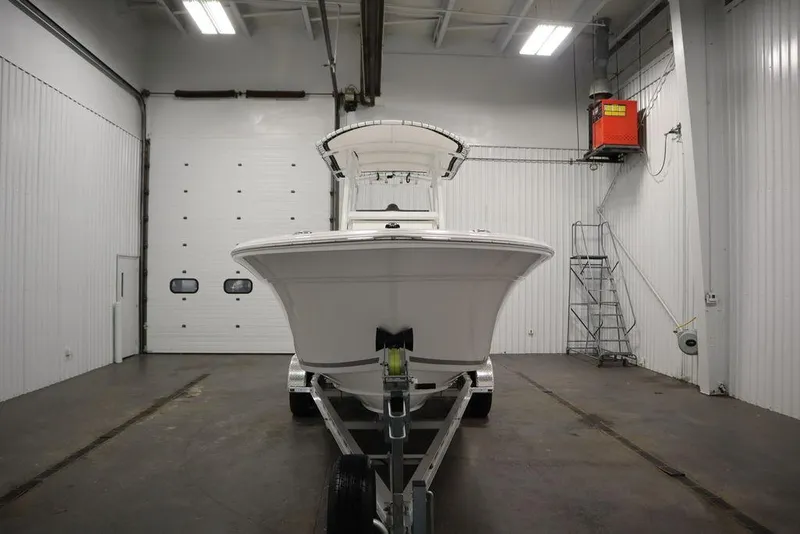 - White Yamaha F200XSA2 with digital controls and electric-hydraulic steering