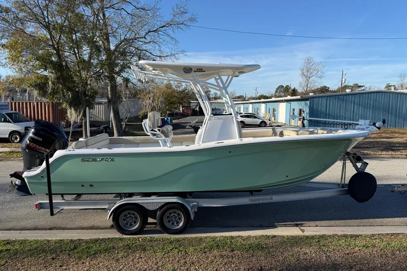 2017 Sea Fox 246 Commander powered by a Yamaha VF250XA with Yamaha Multi Function Digital Gauges, and includes a 2017 Coyote tandem axle aluminum trailer.