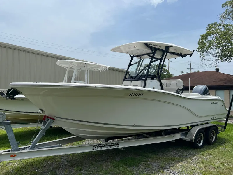 This is a one owner boat purchased brand new in May of 2023. Low hours(97.8) in great shape! Good electronics, tabs and windless. The Sea Fox 248 Commander boasts a redesigned layout and console that draws in many of the popular features found on our larger Commander models. New additions include our popular aquarium view livewell, flip-out bow backrests and new bow table design. The result is a refined, capable offshore platform with more than a touch of style. Contact listing broker Chad Wilson to set up an appointment to view this vessel.