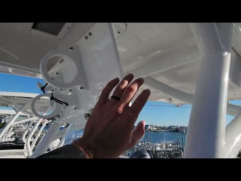 Bahama Blue Sides, Hardtop, White Powder Coating. Garmin 8610XSV Display with thru hull transducer which shows GPS, Depth and Fishfinder. Garmin VHF and Garmin Dome 18" Radar. Pro Package, Led/Tech package, Windlass and trim Tab Indicator are all the factory options.