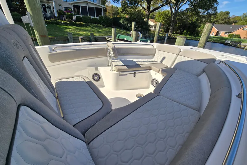 Versatile Design: Designed for both fishing and leisure, it includes fishing amenities such as rod holders and live wells, while also providing comfort for cruising.