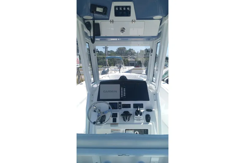 2026 26ft. NEW SeaFox 268 Commander Channel Blue w/Twin Yamaha 150HP XSA Motors. HELMASTER EX FULL MANEUVERABILITY LEVEL 4 JOYSTICK STEERING w/Autopilot, Yamaha Stainless Steel Props, Ultimate Hard Top D-Tubing Flat Glass Helm Enclosure w/Channel Blue Underside Paint, Dive Door w/Ladder, Pro Package w/Phone Charger, 3 Interstate batteries, Underwater lights, Garmin 1243 12 inch GPS w/B60 Thru Hull Transducer, ICOM VHF radio and antenna, Windlass Anchor w/14 lb stainless steel plow anchor, Porcelain Commode w/Overboard Discharge, Lenco PRO Trim Tabs, Ski Tow Bar, Yeti CoolerThe Sea Fox 268 Commander is a 26'0" boat designed for both fishing and family use. It has a Carolina Flare and downward chine to deflect water, and a composite hull for a dry ride. Trailer available at additional cost.