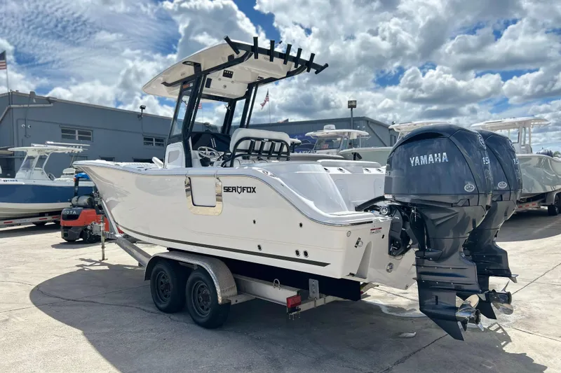 Here at Boat Kings we have a brand new Sea Fox 268 Commander that has just come in! This boat has a ton of features, such as Power Assist Steering pump, twin Yamaha F150XDS outboards with Warranty, Ultima Hard-top w/ D-tubing & Full Enclosure, Black Powder Coating, Premium Upholstery w/ blackout theme with wrap around bow seating, removable cushions, gel coated storage compartments at the bow with drainage, LED Tech Package with Blue mood lights, Power cycle underwater, Electric Toilet w/ Holding tank & Overboard Discharge, Windlass System w/ anchor roller w/ controls included at Helm & 65 Quart Cooler w Stainless steel tiedown kit, and much much more. This boat is absolutely perfect in its size class for creature and family comfort, while being a primed fishing machine. Feel free to come into Boat Kings and Check us out!