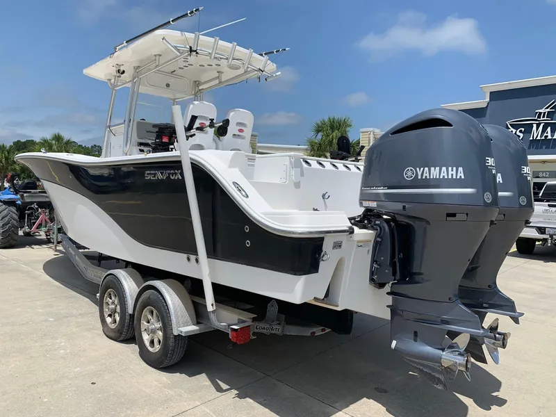 This 2013 Sea Fox 286 Center Console is powered by twin Yamaha 300's with 624 HOURS. The boat is loaded with options including a Sea Star Optimus 360 joystick, autopilot, 2 GPS units, Lowrance radar, and more! Standard features include 2 insulated in-floor fish boxes with macerators, a deluxe console head compartment with toilet and sink, a 40-gallon livewell, and more! For more information, call 910-755-7900.