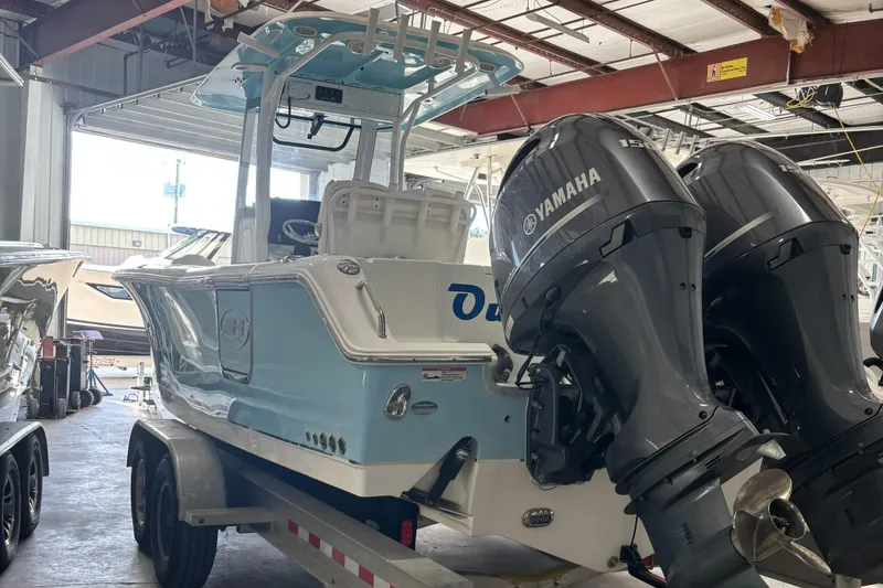 Twin Yamaha 150s with only 150 hours, Simrad electronics, and all the fishing features you need. Built with a fiberglass hard top, side swim door, and forward seating - all part of the boat's solid, versatile design. Don't miss your chance at this turn-key center console!