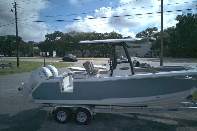 2026 Gamefish 25 with Twin Yamaha F150XSA2.Slate Blue Hull with a Hardtop with Slate Blue Underside and Kingfish Rod Holders. Black Powder Coating on T-top and Seat. Bait tank Leaning Post with Captain Chairs. Garmin 12-inch Electronics Package with VHF. Yamaha Auto Pilot. Bow Backrest, Bow Table (Telescoping) with Cushion. Rear Bench with Gray Interior. Windless Anchor, Trim Tabs with Indicators, Recirculating Livewell, Side Entry Ladder and Ladder Holder, Underwater Lights, Yamaha Reliance/Series Prop. Comes with Trailer.