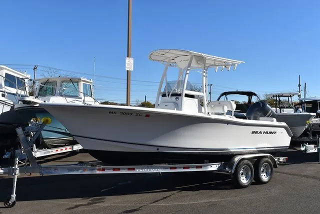You are viewing for sale by Diamond Marine of Connecticut a beautiful 2014 Sea Hunt Triton 210 center console boat, motor and trailer package. This 21 foot center console is powered by a Yamaha F150XA 4 stroke outboard motor with power tilt and trim and 410hrs of well cared for use (We are a Yamaha dealer and have done a thorough inspection). Included in this complete package is a brand new 2026 Venture I-Beam aluminum trailer with disc brakes, radial tires and LED Lights. Boat comes nicely equipped with a Powcoated frame T-Top w/Ebox/Rocket Launchers/Rear spreader light, Fresh coat of bottom paint, 30 Gallon livewell, Garmin 740S GPS/Fishfinder, VHF Radio, Infinity stereo w/ bluetooth, Powder coated frame Leaning post w/ flip-up bolsters and rodholders, Raw water washdown, Walk down console changing or porta potti area, Bow fishboxes, Anchor locker with anchor and line. Boat is also getting 2 new bow cushions, new front of console seat cushion and 2 new transom seat cushions on side of livewell. Boat runs out great and is ready for its next owner. 2014 Sea Hunt Triton 210