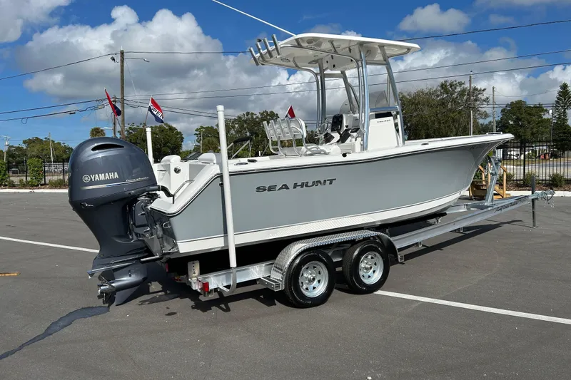 2016 Sea Hunt 225 Triton center console powered with a 4 stroke Yamaha 200hp outboard with only 269 hours. Boat has misters in the T-top, livewell, raw water and fresh water rinse down, brand new simrad go7 with 3-1 transducer, bluetooth/AM FM radio, spreader/courtesy lights, all pre wired with a 36v lithium battery and onboard charger ready to throw your choice of trolling motor on and the list goes on. Livewell pump and raw water pump were just replaced and every other pump, light, hatch and latch works as it should. Comes with a brand new 2026 aluminum tandem torsion axle trailer. Nicest pre owned sea hunt on the market, Come see it for yourself!