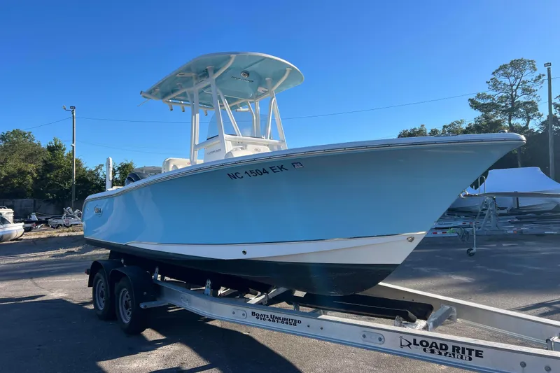 Popular Sea Hunt 225 Ultra ready for immediate deliver. This well equipped and well maintained 2019 225 is powered with a Yamaha 150 with only 243 hours and a recent annual service. Full system evaluation available showing all systems functioning properly. Factory options include power coated fiberglass hard top, Carolina blue hull color and t-top underside, trim tabs, leaning post with backrest, full cushion package including bow backrests, Garmin 9" touch screen and vhf, and JL stereo with 6 speakers. Additional options include **bottom paint** and an 8ft Power Pole Pro Series II. Trailer not included but new trailers available.
