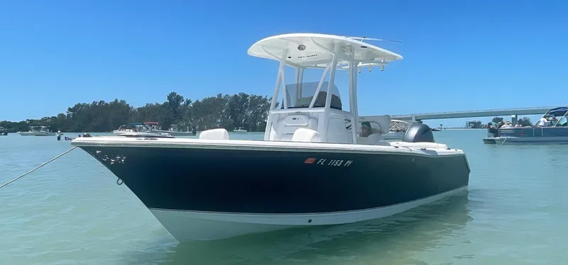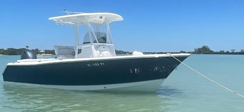 Fishing Features: With a large live well, rod holders, and ample storage, this boat is ready to meet all your fishing needs. It also features a high-quality T-top for sun protection and a wide, stable deck for easy movement.