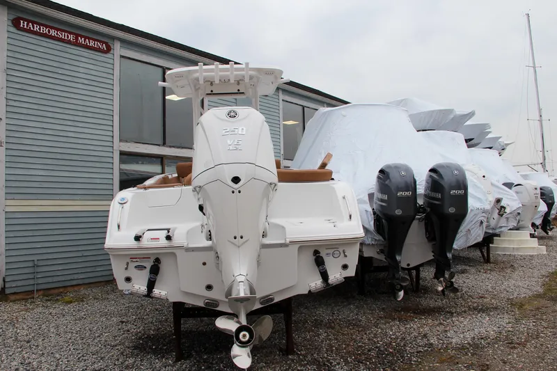 - Powered by a Yamaha F 250 XSB2 in Factory White with Yamaha Electric Steering