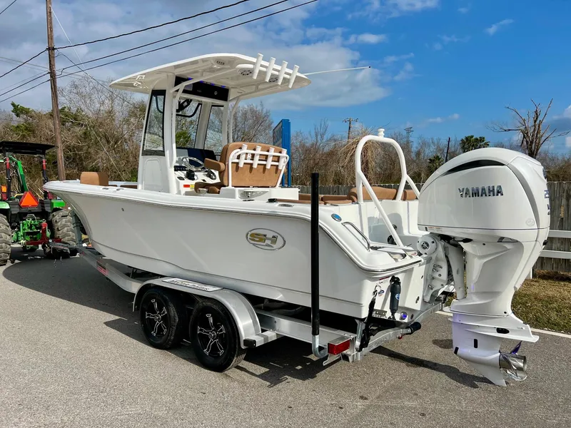 2025 Sea Hunt Ultra 235SE being pushed by a Yamaha F250XSB2 and is sitting on a upgraded McClain tandem axle aluminum trailer. This boat is rigged with all Standard Features and the following Optional options: