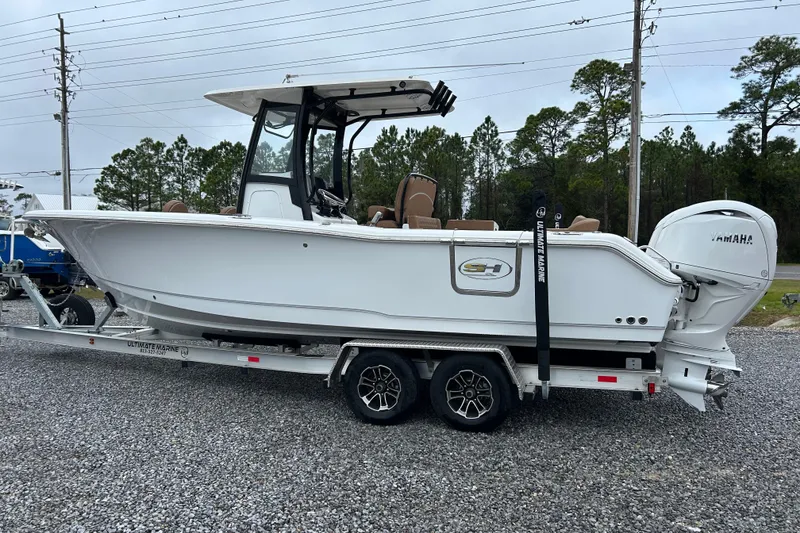 The Sea Hunt Ultra 265 SE is the ultimate hybrid, blending offshore grit with serious family comfort. Powered by twin Yamaha F150s, this setup offers exceptional fuel efficiency and reliability, while the integrated Joystick and autopilot ensure stress-free docking and hands-free navigation. Unique to this build are the dual tuna doors on both the port and starboard sides, providing effortless boarding and easy access for landing large catches.Built with Sea Hunt's proprietary Vortex Hull, it utilizes a carbon-fiber reinforced grid and high-pressure injected foam for a quiet, unsinkable ride. Every hull features the signature Carolina Flare to deflect spray, keeping you dry in rough seas. Complete with a windlass anchor for effortless anchoring, this boat is engineered for durability and premium performance.