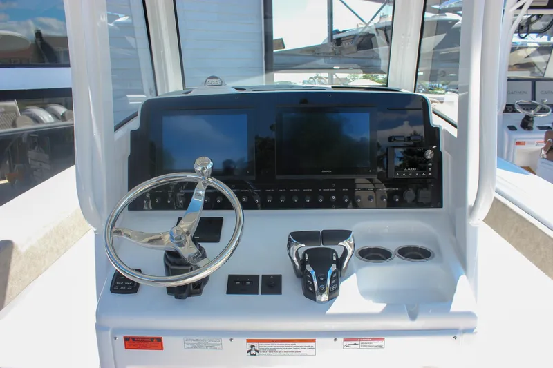 Advanced Features: The boat includes modern amenities such as a well-equipped helm, high-quality electronics, and fishing-friendly features like rod holders and livewells.