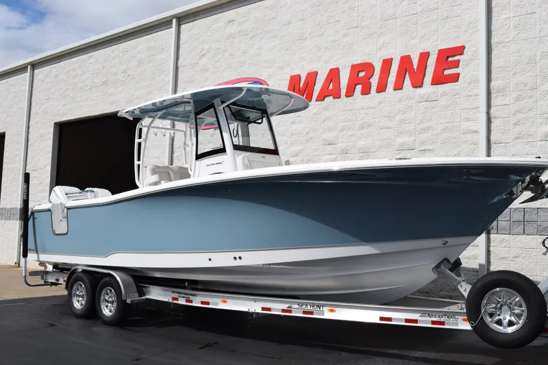 Introducing the stunning 2026 Sea Hunt Ultra 305 Coffin Box, a remarkable center console boat designed for the discerning mariner. With an impressive overall length of 31 feet, this vessel boasts a sleek fiberglass hull featuring a deep Vee shape, ensuring exceptional performance and stability on the water. Powered by two robust Yamaha outboard engines, each delivering 300 horsepower, this boat promises exhilarating speed and agility, making it perfect for both leisurely cruises and adventurous outings. The advanced engineering and thoughtful design make it a standout choice for fishing enthusiasts and families alike. This new model is equipped with modern features, enhancing your boating experience while ensuring comfort and convenience. The Sea Hunt Ultra 305 is not just a boat; it's a gateway to unforgettable memories on the water, combining style, power, and functionality in one exceptional package.