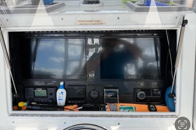 Outfitted with a full Garmin electronics suite including a Garmin GMR 18xHD Radome, dual Garmin GPSMAP 9219 displays, and a Garmin VHF 115, navigation and communication are seamless and reliable.