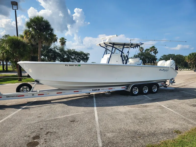 2013 SeaHunter 35 Tournament - Twin 2019 Mercury 400 Supercharged Verados 4 strokes Under Warranty!- Loaded and Ready! (Completely refitted in 2023)Turn heads and crush waves with this immaculate, barn-kept 2013 SeaHunter 35 Open Tournament Edition, built for hardcore fishing and luxurious cruising. Repowered in 2020 with twin Mercury 400 Verado supercharged 4-strokes (only 620 hours) - under Platinum Warranty until June 2025. This boat has been professionally maintained and freshly serviced, ready for its next adventure.INCLUDES:2023 Float-On Tri-Axle Aluminum Trailer - Custom-built with 10" beam supports, electric/hydraulic brakes, LED lighting, bow catch, spare tire, and mag wheels. Road-ready and rock-solid.Key Features:Power & Performance:Twin 2019 Mercury Verado 400Ms - 620 hoursPlatinum Warranty through 06/2025Mercury Digital Rigging & Steering - All updated in 2023Turnkey Bahamas-Ready boat with title in handElectronics & Navigation: (All brand new in 2023)Dual Garmin 8616 & 8616xsv DisplaysGarmin 12kW XHD2 Open Array RadarGarmin VHF Radio with AntennaRemote-Controlled Go Light for night navigationHD Thru-Hull Underwater CameraSound & Entertainment:Fusion MS-AV755 Stereo w/ HD DVDJL Audio System: 18 Premium Speakers, 4 Amplifiers - Concert-quality soundFishing & Utility:Taco Crank-Up Outrigger MountsSmith White Carbon Fiber Double Poles2 Kristal + 2 LP Deep Drop Electric OutletsLivewell Pumps + Rule 2000 Bilge Pump3 Odyssey Batteries + Onboard ChargerLighting & Comfort:Lumitec LED Underwater LightsLED Under-Gunnel & Cabin Lights3 Lumitec Spectrum Spreader LightsMarine Mat Flooring at Helm & Inside ConsoleCustom Interior with OEM LogosAll pipework removed, refinished, and powder-coated in 2023This boat is absolutely loaded, clean, and barn-kept - a rare find that's been meticulously upgraded and cared for. Perfect for serious anglers, tournament fishing, or weekend island hopping.Priced to sell - Title in hand. Call now to schedule a showing or sea trial.