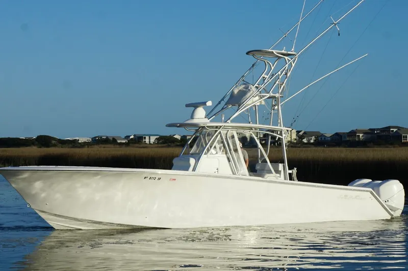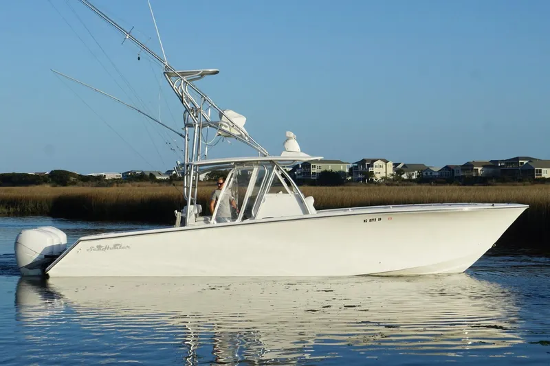 Seahunter Boats has designed the ultimate mid 30 foot center console on the water today. With an ultra wide, stable platform the Seahunter 35 is able to give you more power options, more fuel capacity, more interior options than ever before. The patented deep V design allows for maximum comfort at any speed while keeping al occupants on the boat dry and safe. Whether you are a professional fisherman, a weekend warrior or a weekend cruiser, the Seahunter 35 offers you more than any other boat in its class.