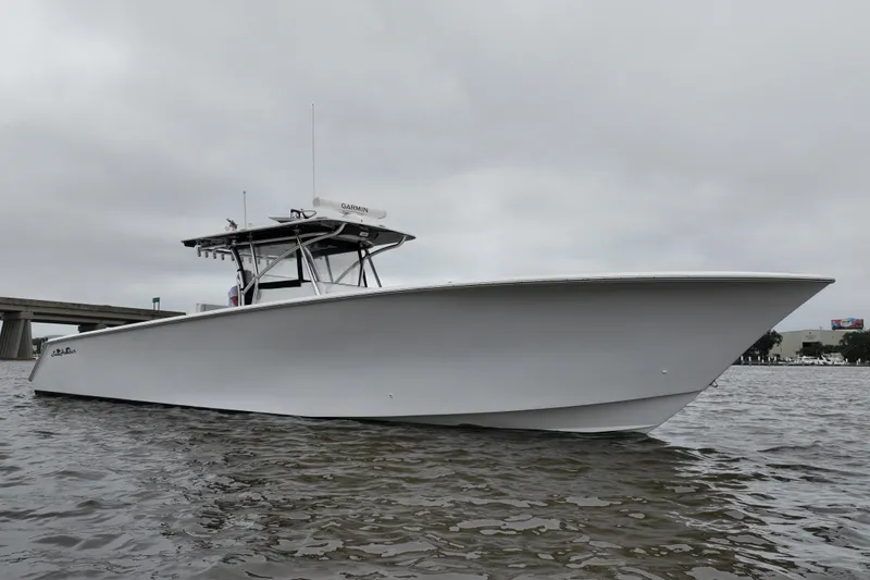 Come check out this Offshore Battlewagon - a 45' SeaHunter powered by Quad 2022 Suzuki 350s! One engine was just replaced and has 0 hours with a Full Warranty. Equipped with Stand Through Station, Garmin Electronics, Tigress Outriggers, Fusion Stereo, Autoplilot and Starlink! Meticulously Serviced and Maintained here at Cove 2 Coast Marine.