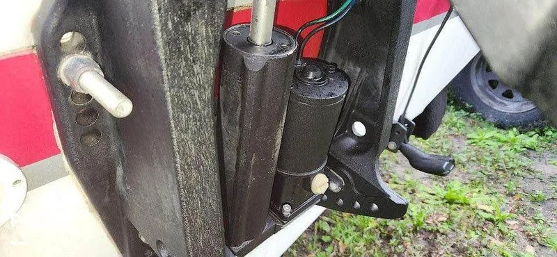 The interior of the boat needs work. Rust spots visible, needs a deep clean but is cleanable. Exterior paint (red) is faded from outside storage. The deck, despite being dirty, looks in good shape. Gauges in working order. Lights are working. Upholstery is cracking and needs cleaning.