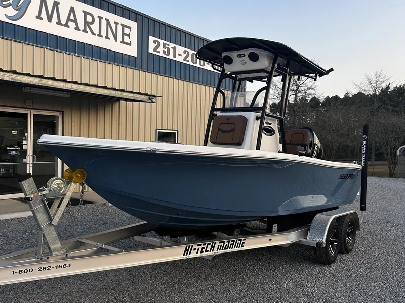 BRAND NEW 2025 SEAPRO 202 WITH SUZUKI 150 WITH TRIM TABS T TOP WITH SOFT CANVAS TOP POWDERCOATED PIPING SIMRAD NS7