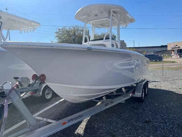 A 2023 new Sea Pro 219 Center Console powered with a Suzuki DF 250 with 0 hours. It's priced with a high quality Ameritrail tandem aluminum trailer. This boat is loaded with features. Here is a list of equipment included in the price: Royal Blue Hullside Color, Deluxe Leaning post, fiberglass color matched Hard Top, Trim Tabs, Underwater Lights, Fresh Water tank with shower, Porta Potti, Complete Bolster package, Removable Bow Table, Forward Seating with backrest, Rear Bench seat, Washdown system, Dual Battery system, Compass, Simrad GPS/Fishfinder, Sound System with 4 speakers, Swim Platform. The price is far below MSRP and is unbeatable. If this is the type of boat you are looking for call us today. It won't last long. FINANCING IS AVAILABLE