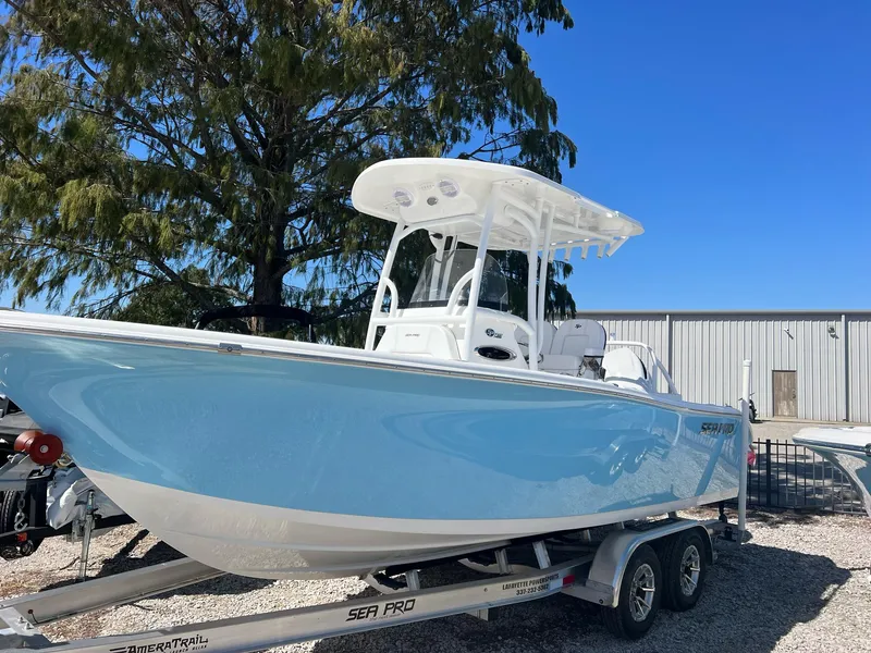 New 2024 SEA PRO 222C CENTER CONSOLE LOADED 22 FT OFFSHORE W/ Digital 250 HP SUZUKI, PREMIUM 6 SPEAKER STEREO with 2-*" and Sub Woofer, COMPLETE BOLSTER PACKAGE, DELUXE LEANING POST, 80 QT SEA PRO COOLER on slide out,16 rod holders with 4 ADD'L SS ROD HOLDERS, FIBERGLASS HARD TOP, FRESHWATER TANK W/ SHOWER, FORWARD BACK REST FOR BOW SEATS, GG SCHMITT REAR BENCH SEAT, HELM PAD, CAROLINA BLUE SIDE GEL, WIRELESS PHONE CHARGER, PORTA POTTI, RECESSED ROD STORAGE, REMOVEABLE BOW TABLE, 5 years of SEA PRO CONNECT security tracking, SIMRAD G012, SKI TOW BAR, SAIL SHADE BOW AND STERN, SUZUKI DIGITAL CONTROLS, TRIM TABS WITH LED INDICATOR, UNDERWATER LIGHTS, VHF RADIO and so much more!