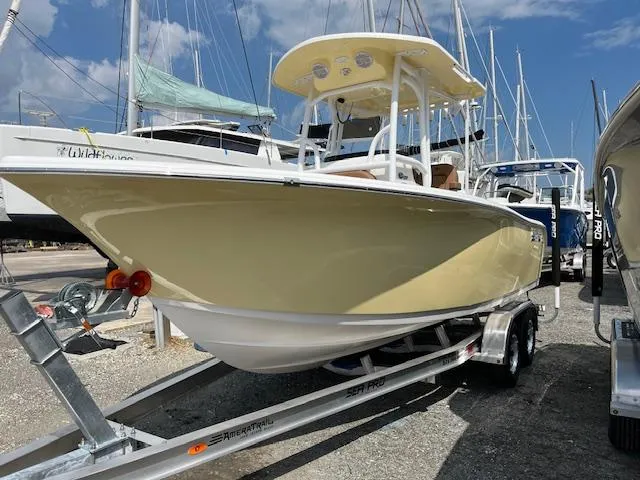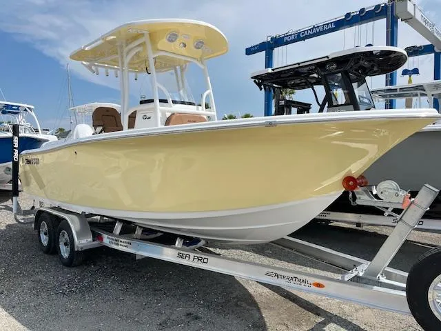 2025 Sea Pro 222 DLX Center Console. Suzuki Digital 200 APXW Four Stroke Outboard. Ameratrail Tandem DLX Trailer w/Aluminum wheels ,Rachet staps, Guide pole covers and Spare. Hard Top w/VHF. Simrad 9" Color touch screen GPS/Fish Finder. VHF Radio.Audison Stereo/Blue Tooth. Removeable Forward Seating. Console Cover. Fresh Water Shower. Bow Table. Sea Pro Connect.Trim Tabs w/Indicators.Underwater Lights. Fighting Lady Yellow w/Cafe Brown Interior. 5 Year Bow to Stern Warranty!