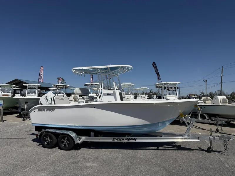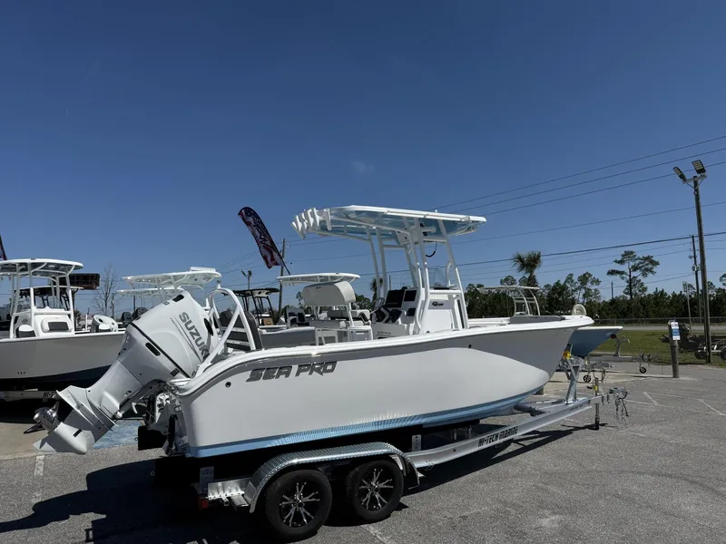 BRAND NEW 2025 SEA PRO 225 SANDBAR MODEL! SUZUKI DF200 4 STROKE FULL FIBERGLASS T TOP WITH POWDER COATED RAILS COMPLETE BOLSTER PKG FRESH WATER SHOWER WITH SINK LIGHT BAR ON T TOP UNDER WATER LIGHTS VHF RADIO PKG SIMRAD NSX9 GPS SONAR AUDISON STEREO REAR SANDBAR TABLE MOUNT DELUXE CONSOLE UPGRADE SEADECK HELM PAD