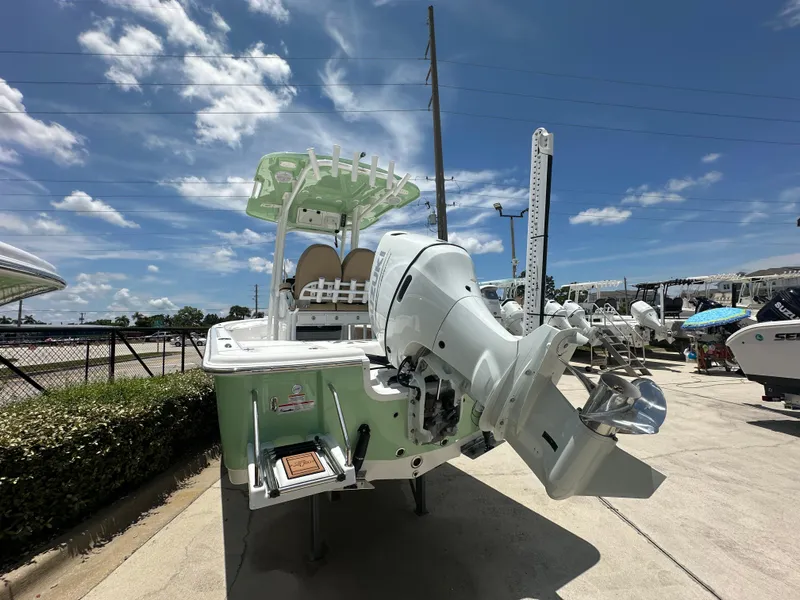 Options Included: Suzuki DF200APXW5, Sea Foam Hull Sides, White Hull Bottoms, White Powder Coat, Sand Upholstery, Standard Audison Audio, Stainless Steel Cup Holders (8), Sand Deluxe Leaning Post with White Powder Coat, Fiberglass Hard Top Sea Foam, Fresh Water Wash Down Kit, Power Pole 10' (Port) White, Sea Pro Connect/Boat Fix, B60 Transducer, Simrad Unit NSX9, Standard Acrylic Windscreen, Minn Kota Terrova 112/IP BT with Quick Release 60", Trim Tabs with LED Indicator Switch, VHF Radio RS20, and SS Prop.