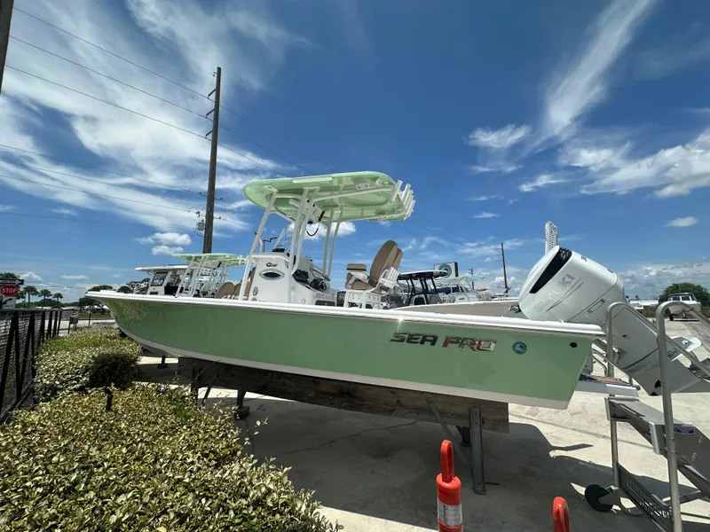 Options Included: Options Included: Suzuki DF300APXW5, Sea Foam Hull Sides, White Hull Bottoms, White Powder Coat, Sand Upholstery, Standard Audison Audio, Stainless Steel Cup Holders (6), Sand Deluxe Leaning Post with White Powder Coat, Fiberglass Hard Top Sea Foam, Fresh Water Wash Down Kit, Power Pole 10' (Port) White, Sea Pro Connect/Boat Fix, B60 Transducer, Simrad Unit NSX9, Standard Acrylic Windscreen, Minn Kota Terrova 112/IP BT with Quick Release 60", Trim Tabs with LED Indicator Switch, VHF Radio RS20, and SS Prop.