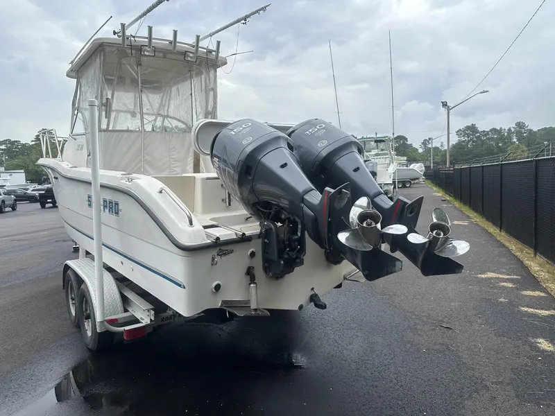 Very well maintained low hour Sea Pro 255WA powered with reliable 2004 Yamaha 150 HPDI's. Trailer in good condition with torsion axles and disc brakes on front axle. Electronics include Furuno Nav net C map and Furuno Model 1623 Radar along with VHF assembly. Boat is equipped with Hard top to include Taco outriggers and full canvas enclosure. Also comes with a Quest Remote Spot/Search Light. Boat is also equipped with Anchor Windlass, Trim Tabs and swim ladder. Looking for a nice buddy cabin at affordable price come take a look.