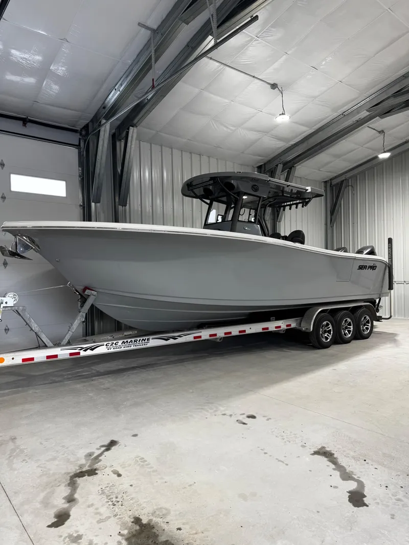 2025 Sea Pro 292 DLX, 2025 Sea Pro 292 DLX - Center Console A premium, ready-for-anything 2025 Sea Pro 292 DLX built with thoughtful upgrades and outfitted for big water comfort, fishability, and confident handling - stealthy looks, serious capability, and elevated creature comforts all in one package. Below are the factory-selected options and equipment included with this build (sourced from the boat's factory order). Power & Controls Twin Suzuki DF300APX outboards (Black) Suzuki Digital Rigging Joystick Control with Optimus 360 and Sea Station (Suzuki) Hull, Finish & Colors Shark Skin (Gray) hull side, underside, top and console color packages Hammer Gray powder coat accents Comfort & Seating Platinum upholstery color Bow seating with removable backrest Bow table with cushion Complete bolster package Premium stern folding bench seat with backrest Fiberglass leaning post with cooler slide Fiberglass leaning post cover Deck, Safety & Convenience Drum windlass with 200' rope & foot switches Side entry door ladder Phender Pro clips Stainless steel cup holders (9) & cup/rod holders (4) Rainfall fresh water shower Fishing & Systems In-floor fish box with macerator pump Pump-out head with overboard discharge Steering & Performance Zipwake auto level interceptor tabs Electronics & Helm NSS16 Simrad display VHF Radio (RS20) Console glass bridge helm/top Light bar for hard top Sea Pro Connect App integration Audio & Entertainment Upgrade audio package: multi-channel amp, 12" sub, and four additional 8" speakers (2) Cove wireless phone chargers Underwater full-color lights Other Notable Features Fiberglass hard top T-top with windshield enclosure Console hard top light bar Additional factory-installed accessories as listed on order. ⚓ Financing, Delivery & Full Service Available - We make the buying process as smooth as the ride. Ask about flexible financing options, nationwide delivery, and complete service support to keep you on the water worry-free.
