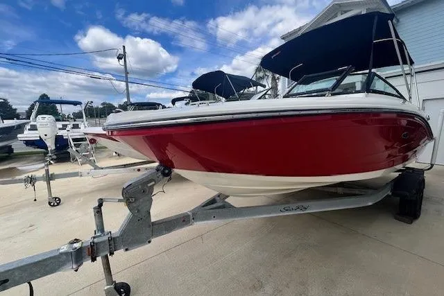 Introducing the stunning 2018 Sea Ray 19 SPX OB, a remarkable bowrider that combines elegance with performance. This versatile vessel measures an overall length of 19 feet, making it perfect for both leisurely outings and thrilling adventures on the water. Crafted from durable fiberglass, the hull ensures a smooth ride and longevity. Powered by a robust 150 hp Mercury outboard engine, this boat promises exhilarating speed and agility. The 3-blade aluminum propeller enhances performance, allowing for effortless navigation through various water conditions. Designed for comfort and enjoyment, the Sea Ray 19 SPX OB is ideal for gatherings with friends and family. Its thoughtful design and quality construction make it a standout choice for boating enthusiasts. Experience the joy of the open water with this exceptional bowrider, where every moment is an opportunity for adventure and relaxation.
