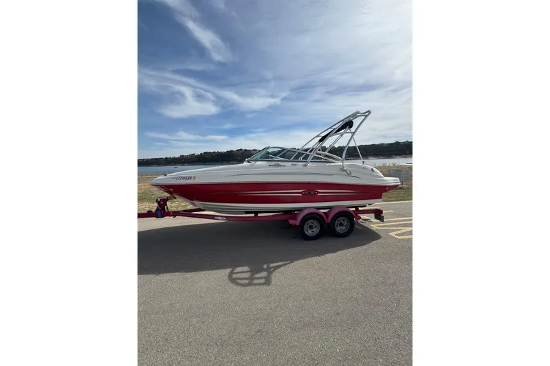 The 2007 Sea Ray 200 Sundeck is a versatile 21-foot deck boat designed for day cruising and watersports, featuring a 5.0L MerCruiser MPI (260 HP) engine. It comfortably seats eight, featuring a spacious bow, L-shaped cockpit seating, and an integrated swim platform. Standard features include a Bimini top, snap-in carpet, and stainless steel hardware.
