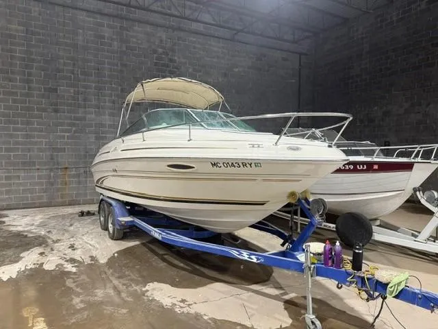 Priced to sell! This 1999 Sea Ray 215 Express Cruiser runs strong. Small cuddy cabin for nights on the lake, includes twin axel trailer, bimini top and cassette toilet. 305 EFI Mercruiser with 240 HP and Alpha One outdrive. Price reflects need for upholstery repair