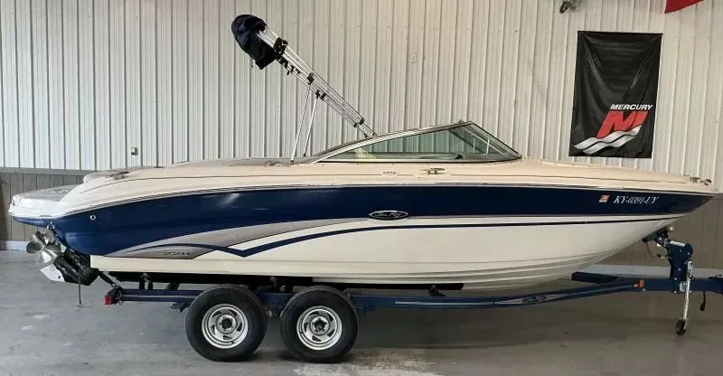 2003 Sea Ray 220 BR, A Family Fun Boat! 2003 SEA RAY 220 BR This SEA RAY 220 BR is what you have been waiting for. This Sea Ray has a spacious and comfortable cockpit and bow area for your family and friends to enjoy the water and sun on the weekends. The MerCruiser 5.0 l MPI engine with 928 hours provides enough power for water sports or just cruising in the sun. This Sea Ray is equipped with a new Bimini top and frame, blue tooth stereo with controls at the helm and the stern, ample storage under the seats, captain and co-captain swivel seats with bolsters, wood grain accents throughout the interior, a large layout deck at the rear of the boat, full morning cover with support poles, all sitting on a tandem axle color matching trailer. Don't let this Sea Ray slip by at this price.