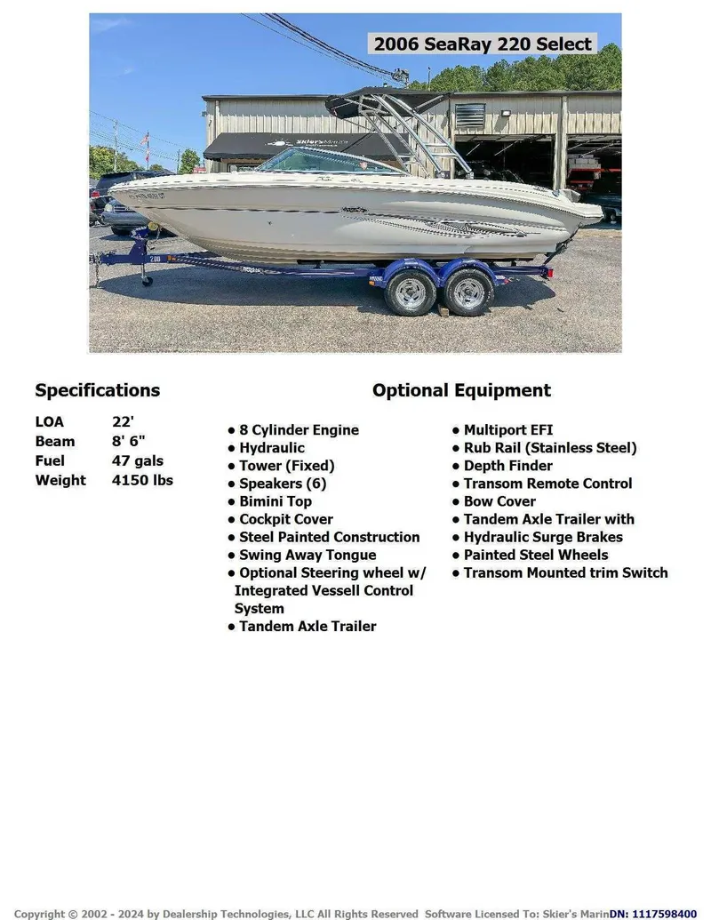 Customers appreciate the 2006 Sea Ray 220 Select for its sleek design, reliable performance, and comfortable seating