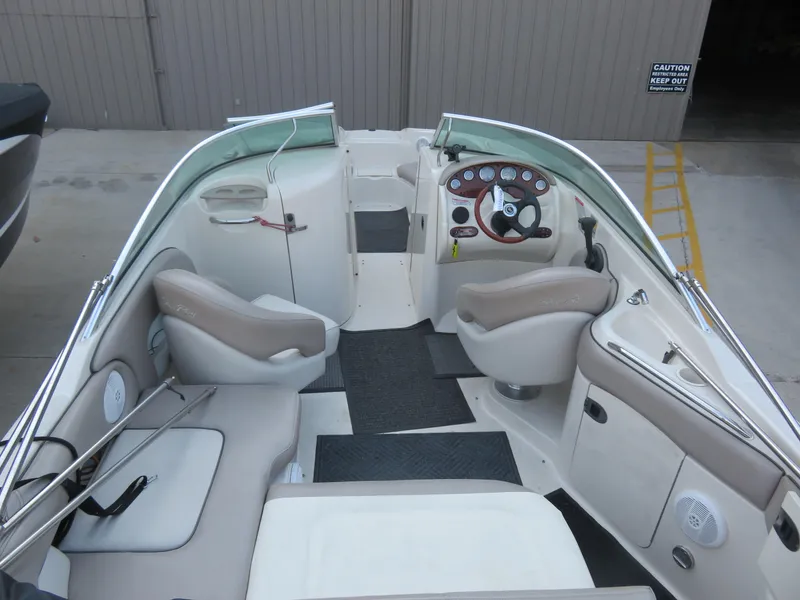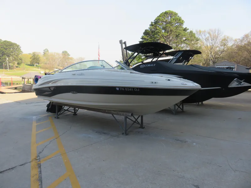 This is a Freshwater Dry Stored 220SD that we sold new. It has about 370 hours on a Mercruiser 5.0l MPI Bravo III and is equipped with Bimini Top; Bow & Cockpit Covers; Pump Out Head; Battery On/Off Switch; Forward Pull Out Sprayer; Forward Cockpit Table; Premier Stereo Upgrade; Bow Filler Cushion; NO TRAILER!!
