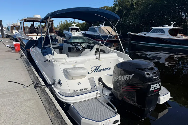Ready to get on the water and enjoy the boating season in style. This 220 Sundeck is equip with a 250 HP Mercury Verado engine which runs like a top. Only 267 hours of use so there is plenty more exciting days to enjoy time on the water. Being stored in the marina barn and with a full boat cover has kept the fiberglass and vinyl in like-new condition.
