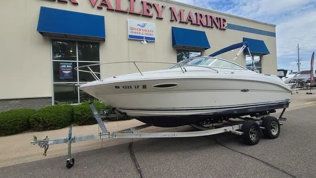 2002 Sea Ray 225 Weekender, The 225 Weekender from Sea Ray is certainly a value packed boat with great size for a 22 foot Cuddy. This boat is Powered by a 5.0L EFI 260 HP MerCruiser/Bravo 3 Drive with 817 Hrs and rides on a Tandem Trailer. The Extended Swim Platform is a Noteworthy Item and allows for easy boarding, the cockpit is very open and the Back Seats can be removed to allow for more room to move around. The Forward Facing Helm and Passenger Seats are Very Big and Comfortable and Both the Passenger and the Helm Seat has a Flip Up Bolsters. The Garmin GPS, Snap In Carpeting, Transom Shower, Cockpit Cover & Full Canvas Enclosure all add to the value! Walk into the Cabin and there is a Sink and Separate Area for the Porti Pottie, the Bow can fill in to be a bed and there is a table that can be set up as well. Other nice features & equipment coming with this boat includes a Compass, Stereo, Stainless Steel Props (Bravo 3), Anchor, and Bottom Paint.