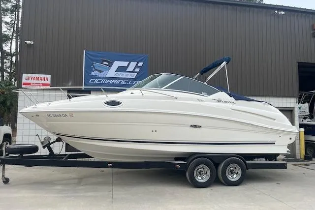 Introducing the 2008 Sea Ray 240 Sundancer, a stunning cruiser that perfectly blends style and performance. With an overall length of 24.8 feet, this vessel boasts a sleek modified vee hull made of durable fiberglass, ensuring stability and a smooth ride on the water. Powered by a robust MerCruiser 5.0L MPI Bravo III engine, delivering 260 horsepower, it offers an exhilarating experience for both leisurely cruising and spirited adventures. Designed for comfort and socializing, the 240 Sundancer accommodates up to 10 passengers, making it ideal for gatherings with family and friends. The thoughtful layout includes a head for convenience, enhancing the onboard experience. This used model has been well-maintained, with only 837 hours of engine use, promising reliability for your nautical journeys. Embrace the open water with the Sea Ray 240 Sundancer, where every outing becomes a memorable escape.