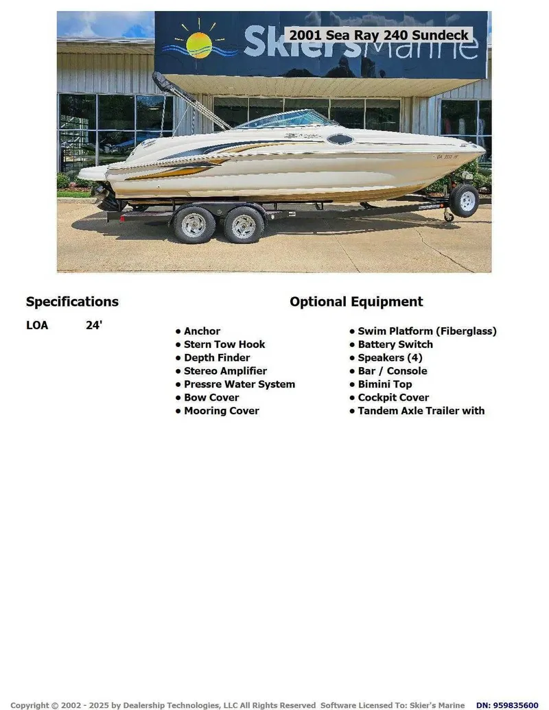 Contact Skier’s Marine Lake Martin about 2001 Sea Ray 240 Sundeck